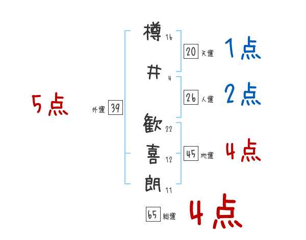 樽井歓喜朗さんの画数の鑑定結果