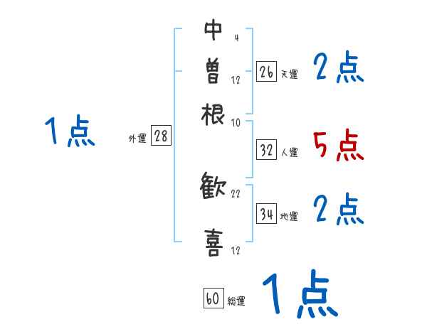 家系が持つ宿命的な運勢を表します。祖先から受け継いだ苗字ですので自分の力が及びません。家柄を象徴します。