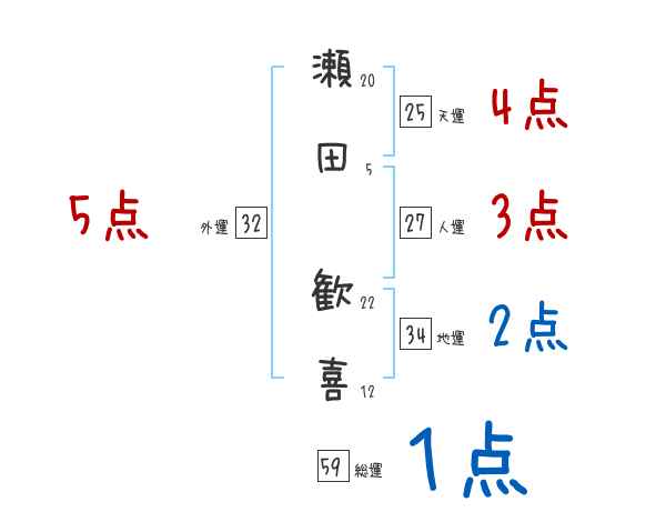 瀬田歓喜さんの画数の鑑定結果