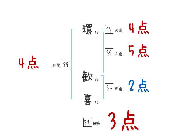 環歓喜さんの画数の鑑定結果