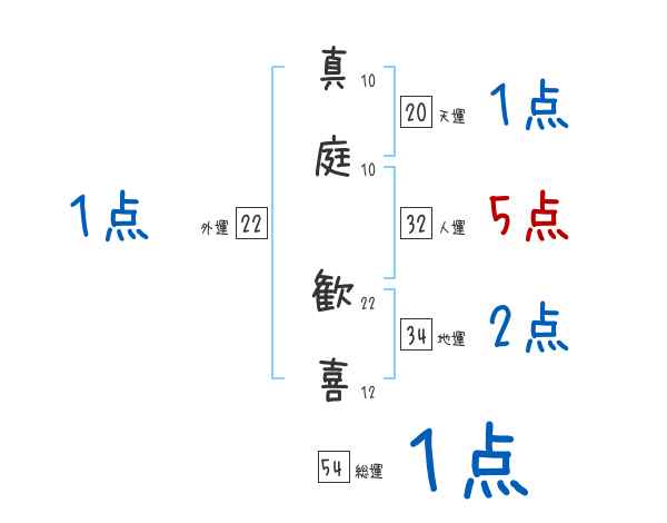 真庭歓喜さんの画数の鑑定結果