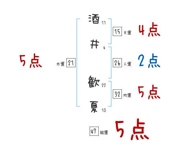 酒井歓夏さんの画数の鑑定結果