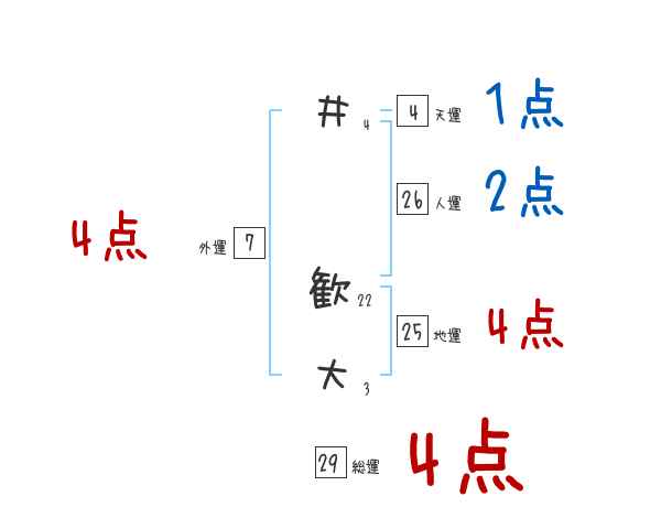 家系が持つ宿命的な運勢を表します。祖先から受け継いだ苗字ですので自分の力が及びません。家柄を象徴します。