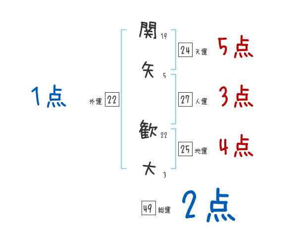 関矢歓大さんの画数の鑑定結果