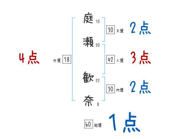庭瀬歓奈さんの画数の鑑定結果