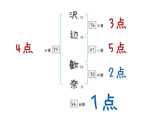 沢辺歓奈さんの画数の鑑定結果