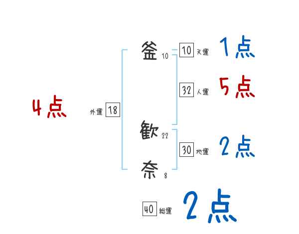 釜歓奈さんの画数の鑑定結果
