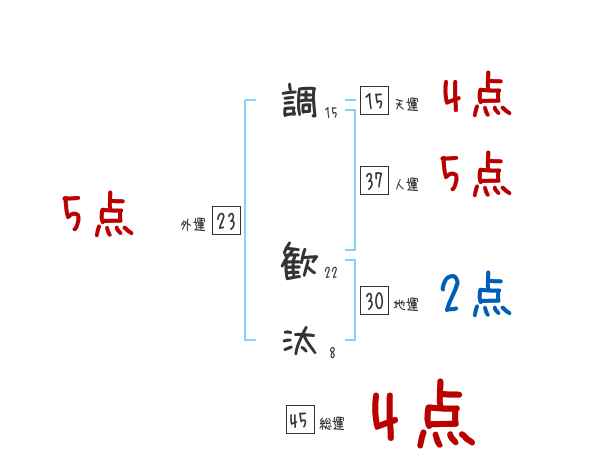 天運![]() | 調歓汰さんの天運は15画の4つ星!人徳があり出世する。順調に物事を進め円満な人生。 家系が持つ宿命的な運勢を表します。祖先から受け継いだ苗字ですので自分の力が及びません。家柄を象徴します。 |
