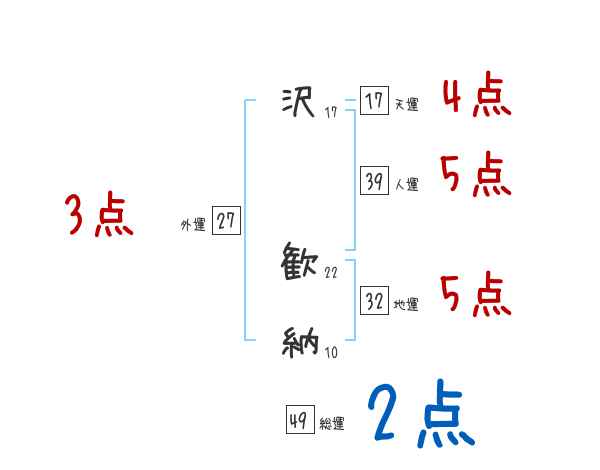 沢歓納さんの画数の鑑定結果