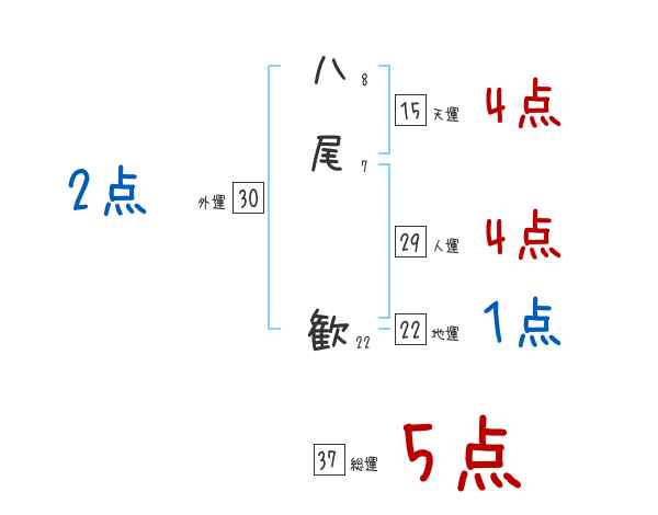 八尾歓さんの画数の鑑定結果