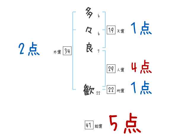 多々良歓さんの画数の鑑定結果