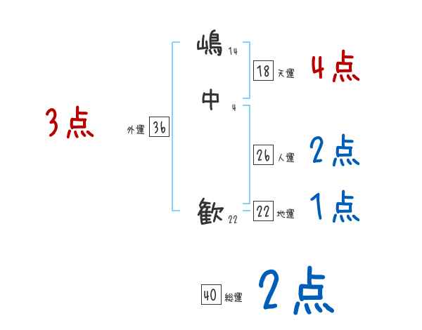 嶋中歓さんの画数の鑑定結果