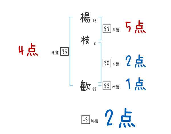 楊枝歓さんの画数の鑑定結果