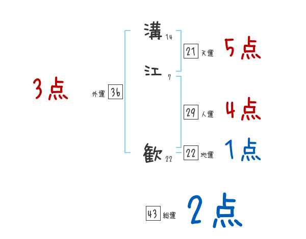 溝江歓さんの画数の鑑定結果