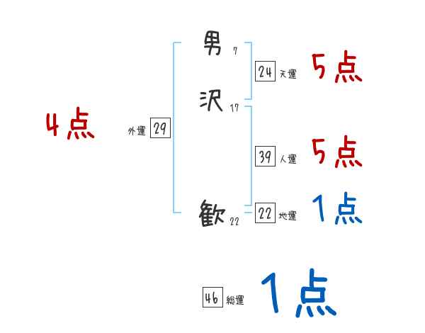 男沢歓さんの画数の鑑定結果