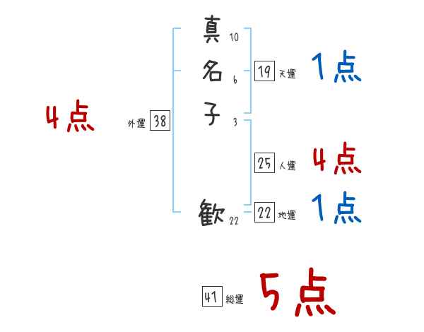 真名子歓さんの画数の鑑定結果