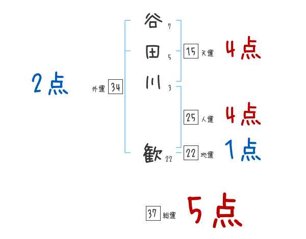 谷田川歓さんの画数の鑑定結果
