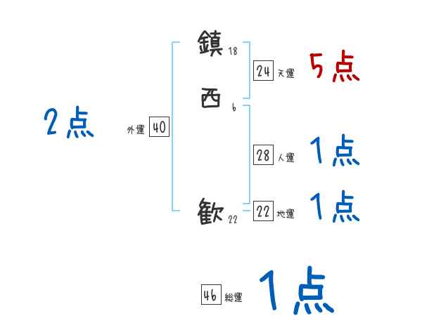 外運![]() | 鎮西歓さんの外運は40画の2つ星!自信過剰で物事に固執するためトラブルに注意。 生活面を象徴する運勢です。外部から受ける影響力を表し、結婚運、家庭運や職場、環境への順応性を表します。 |