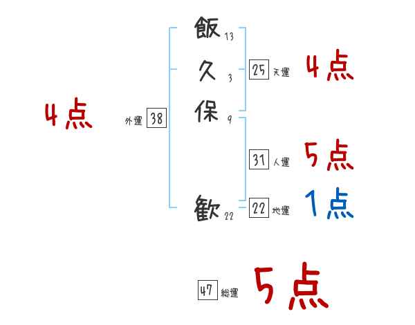 飯久保歓さんの画数の鑑定結果