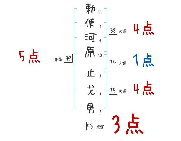 勅使河原止戈男さんの画数の鑑定結果