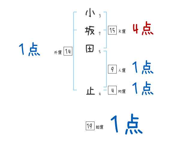小坂田止さんの画数の鑑定結果