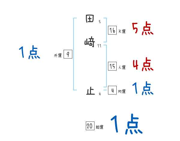 天運![]() | 田﨑止さんの天運は16画の5つ星!人望が厚く大きく発展する。逆転成功が見える。 家系が持つ宿命的な運勢を表します。祖先から受け継いだ苗字ですので自分の力が及びません。家柄を象徴します。 |