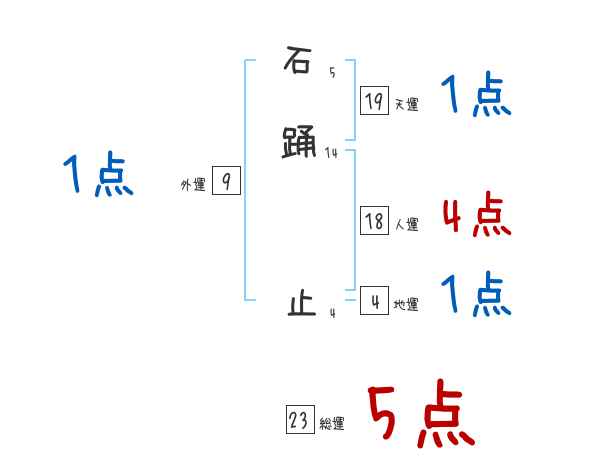 石踊止さんの画数の鑑定結果