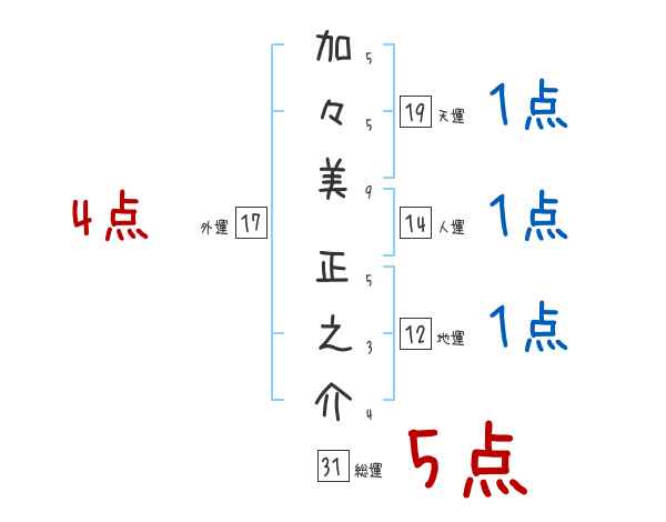 外運![]() | 加々美正之介さんの外運は17画の4つ星!積極的な行動力。地位を気づき財産を手に入れる。純粋な心と直感力。 生活面を象徴する運勢です。外部から受ける影響力を表し、結婚運、家庭運や職場、環境への順応性を表します。 |