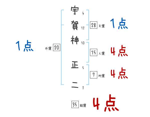 宇賀神正二さんの画数の鑑定結果