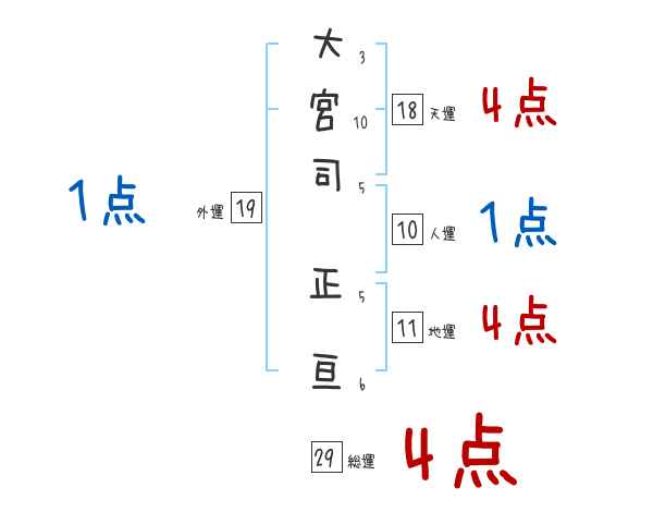 大宮司正亘さんの画数の鑑定結果