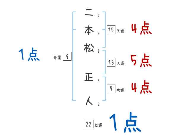 二本松正人さんの画数の鑑定結果