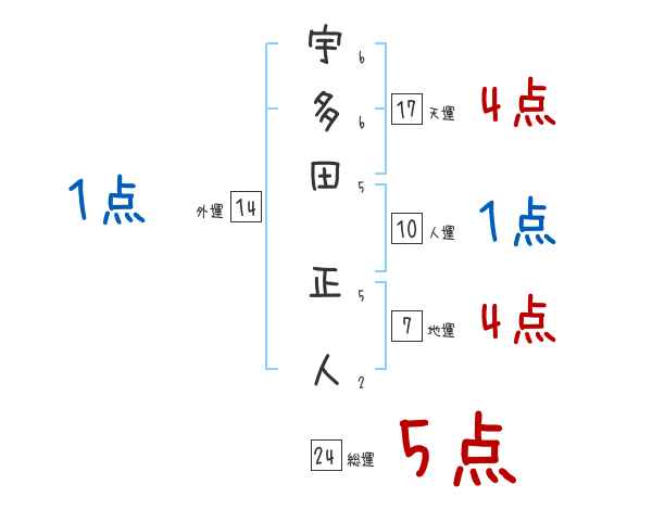 天運![]() | 宇多田正人さんの天運は17画の4つ星!積極的な行動力。地位を気づき財産を手に入れる。純粋な心と直感力。 家系が持つ宿命的な運勢を表します。祖先から受け継いだ苗字ですので自分の力が及びません。家柄を象徴します。 |