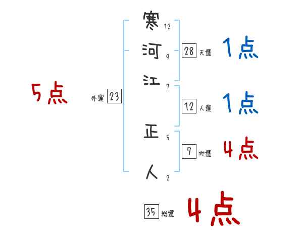 天運![]() | 寒河江正人さんの天運は28画の1つ星!家庭環境に注意。スポーツで活躍できる能力があるかも。 家系が持つ宿命的な運勢を表します。祖先から受け継いだ苗字ですので自分の力が及びません。家柄を象徴します。 |