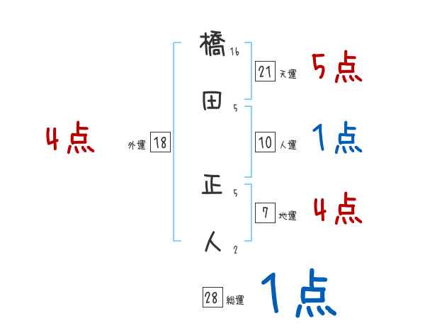 橋田正人さんの画数の鑑定結果