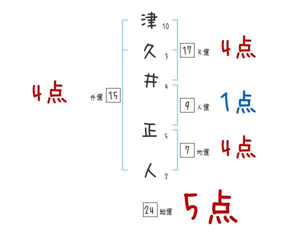 総運![]() | 津久井正人さんの総運は24画の5つ星!家庭運が良く順調な人生。金運にも恵まれる。 あなたの人生を表す1番重要な運勢です。生涯を通じて影響する総合運となり、主に50歳以降の晩年期に影響を及ぼします。 |