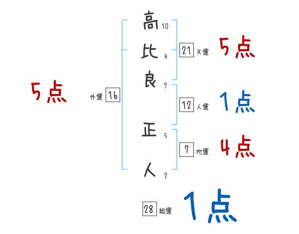 天運![]() | 高比良正人さんの天運は21画の5つ星!統率力がある。独立し成功する。名誉を手に入れる。 家系が持つ宿命的な運勢を表します。祖先から受け継いだ苗字ですので自分の力が及びません。家柄を象徴します。 |