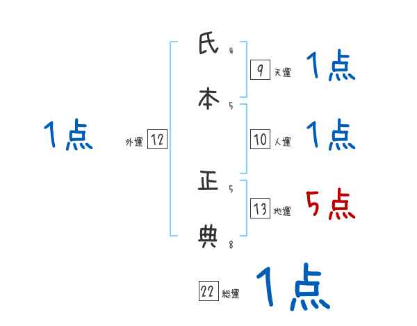 氏本正典さんの画数の鑑定結果