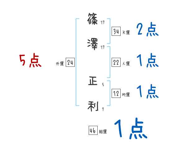 篠澤正利さんの画数の鑑定結果