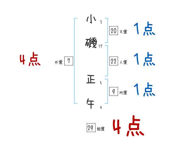 小磯正午さんの画数の鑑定結果