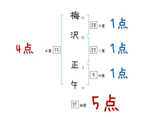 梅沢正午さんの画数の鑑定結果