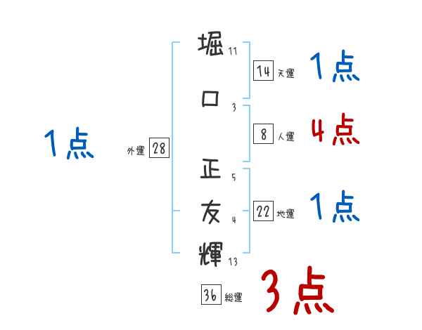 総運![]() | 堀口正友輝さんの総運は36画の3つ星!先見性が豊かです。多少神経質で苦労することも。 あなたの人生を表す1番重要な運勢です。生涯を通じて影響する総合運となり、主に50歳以降の晩年期に影響を及ぼします。 |