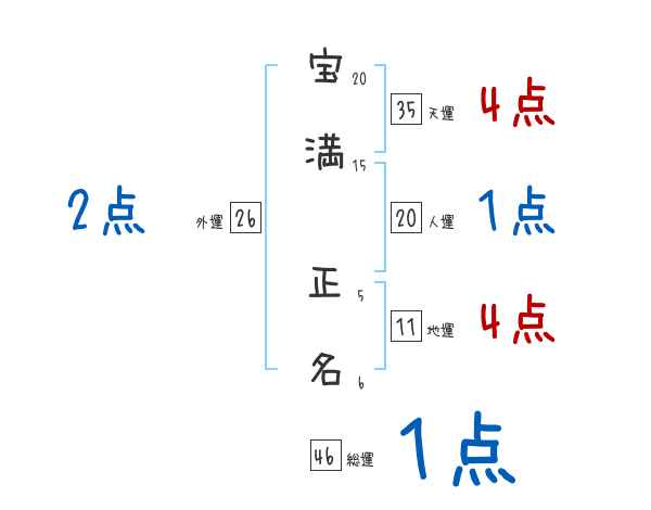 宝満正名さんの画数の鑑定結果