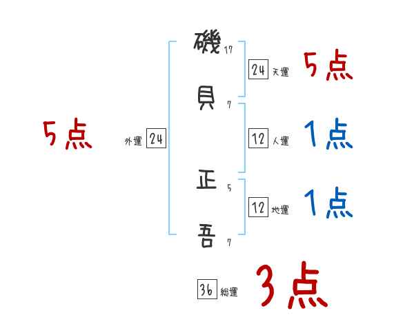 磯貝正吾さんの画数の鑑定結果