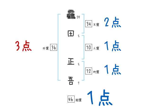 靏田正吾さんの画数の鑑定結果