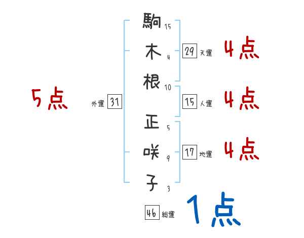 駒木根正咲子さんの画数の鑑定結果