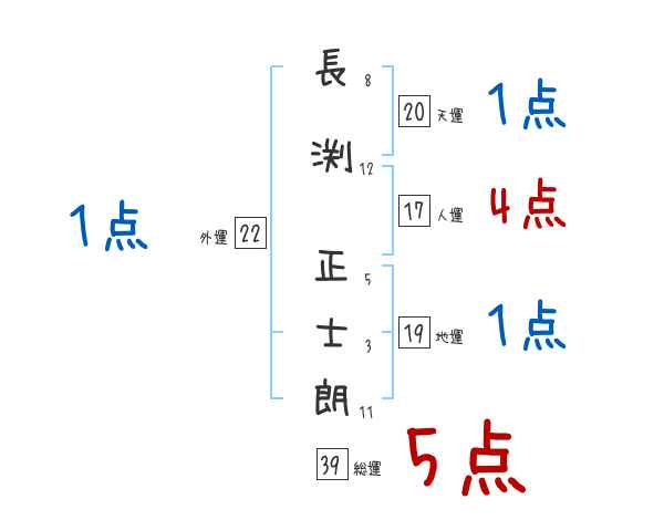 総運![]() | 長渕正士朗さんの総運は39画の5つ星!社交性に優れ人望が厚い。人の上に立ち成功する。 あなたの人生を表す1番重要な運勢です。生涯を通じて影響する総合運となり、主に50歳以降の晩年期に影響を及ぼします。 |