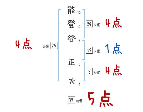 天運![]() | 能登谷正大さんの天運は29画の4つ星!完全主義で才能がある。厳格な心の持ち主。 家系が持つ宿命的な運勢を表します。祖先から受け継いだ苗字ですので自分の力が及びません。家柄を象徴します。 |