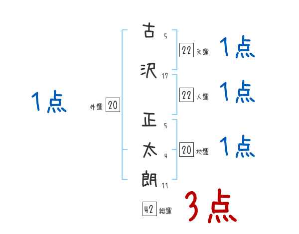 天運![]() | 古沢正太朗さんの天運は22画の1つ星!努力することが苦手ないっぽう手先が器用。芸術性にも優れる。 家系が持つ宿命的な運勢を表します。祖先から受け継いだ苗字ですので自分の力が及びません。家柄を象徴します。 |