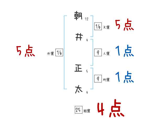 朝井正太さんの画数の鑑定結果