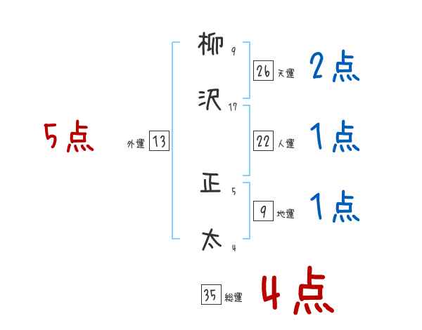総運![]() | 柳沢正太さんの総運は35画の4つ星!温厚な性格で感受性が高い。穏和な性格で人望が厚い。 あなたの人生を表す1番重要な運勢です。生涯を通じて影響する総合運となり、主に50歳以降の晩年期に影響を及ぼします。 |